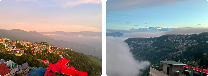 이윽고 도착한 다르질링. 도착하자마자 맑고 시원한 공기가 느껴집니다. 탁 트인 풍경, 역시 인도인들에게 사랑받는 휴양지라는 생각이 들었습니다. 고심 끝에 고른 숙소는 우리에게 과분한 풍경을 선물했습니다. 한참 넋을 놓고 바라보게 되는 광경이었습니다. 숙소에 짐을 내려놓고, 부지런히 동네를 걸어 봅니다.