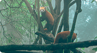 가장 눈에 띄는 동물은 레서 판다였습니다. 붉은 털에 눈 주변의 하얀 무늬가 인상적인 이 동물은 ‘세상에서 가장 귀여운 동물’이라는 별명을 갖고 있지만, 안타깝게도 멸종위기에 처해 있습니다. 숲이 사라지고 밀렵이 늘어나면서 개체 수가 크게 줄었기 때문입니다.