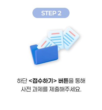 ※ 이메일로만 제출하실 경우 접수가 누락될 수 있으므로, 하단 <접수하기>를 통해 과제 설명을 꼭 제출해 주세요!